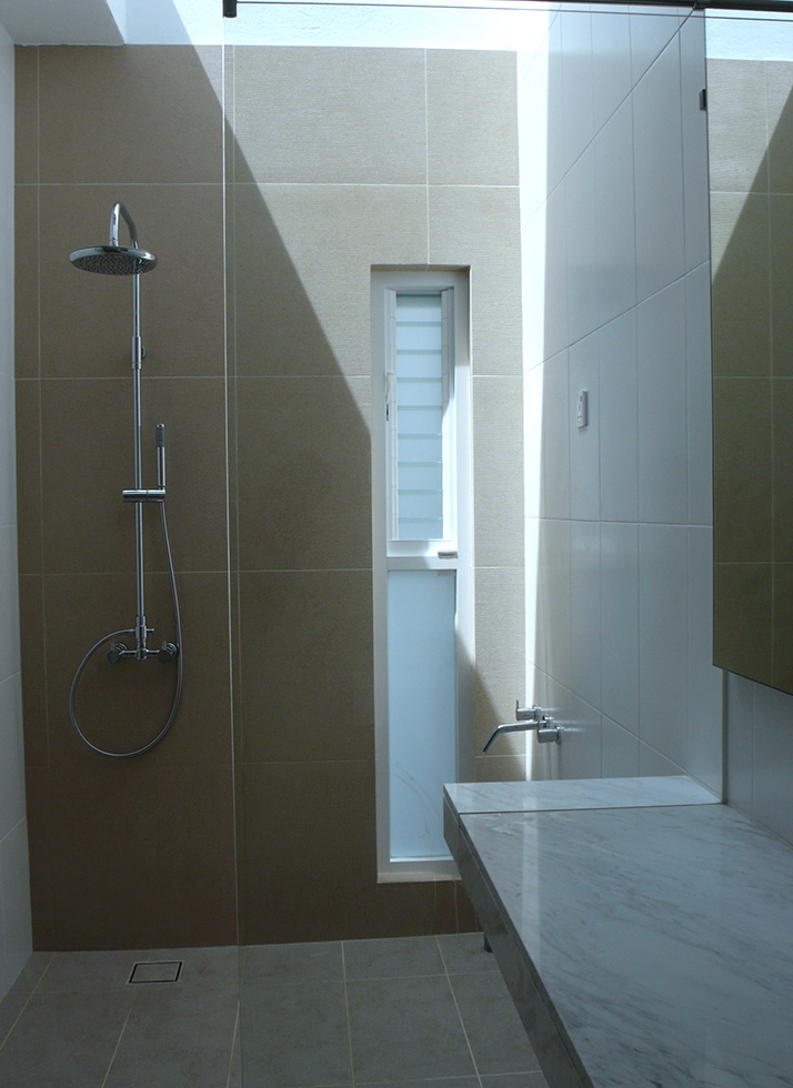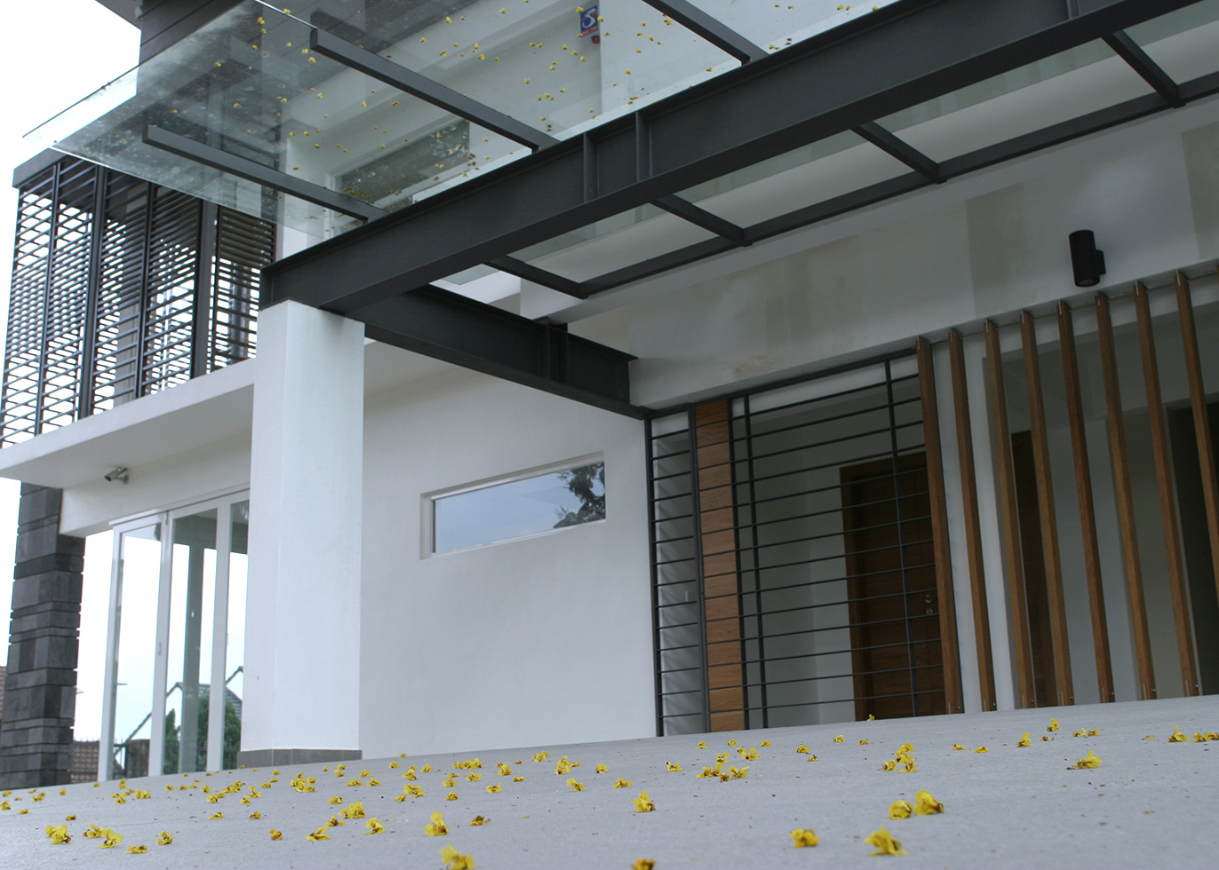 Complete architectural and interior make over of existing semi-D house. Extension of existing building to create more living space without compromising in lost of natural day light penetrating to interior. Secret skylight was introduced to master bath to create light filled bathroom with maximum ventilation for our humid climate. Koi pond surrounding the glass patio and living to create ZEN feel to the environment. Full width collapsible glass door to the living encourages indoor and outdoor living that fuses the Koi pond, living and glass patio into one mega living space.